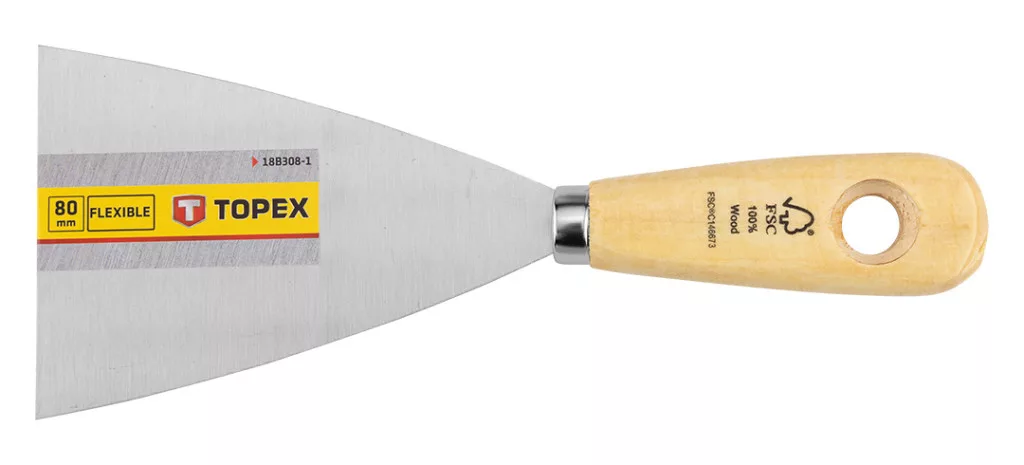 Topex festékkaparó, spakli, 80mm, rozsdamentes acél, fanyelű