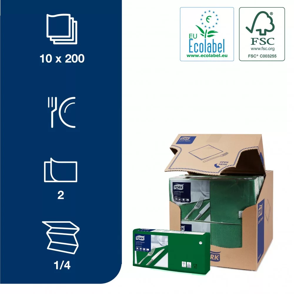 Tork Advanced Lunch éttermi szalvéta, 2 rétegű, zöld, 33x33 SCA477214