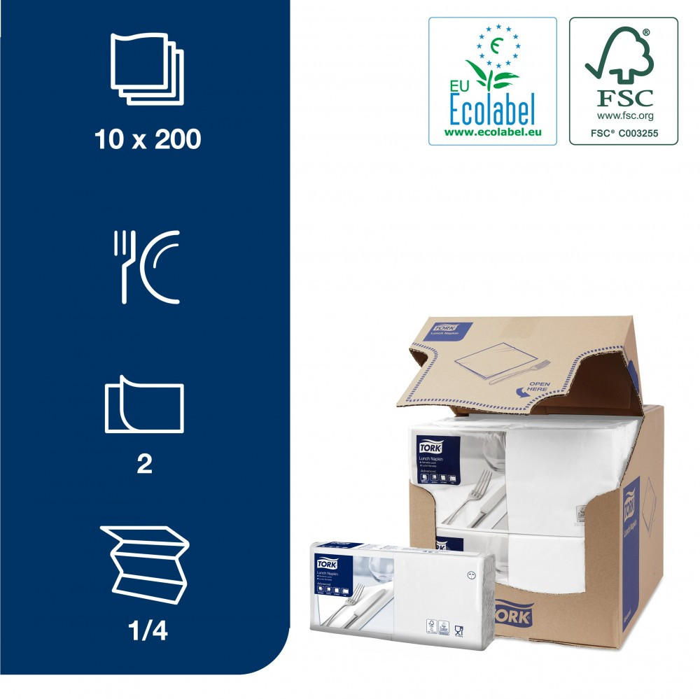 Tork Lunch éttermi szalvéta Advanced fehér 2 rétegű, 33x33 SCA477149