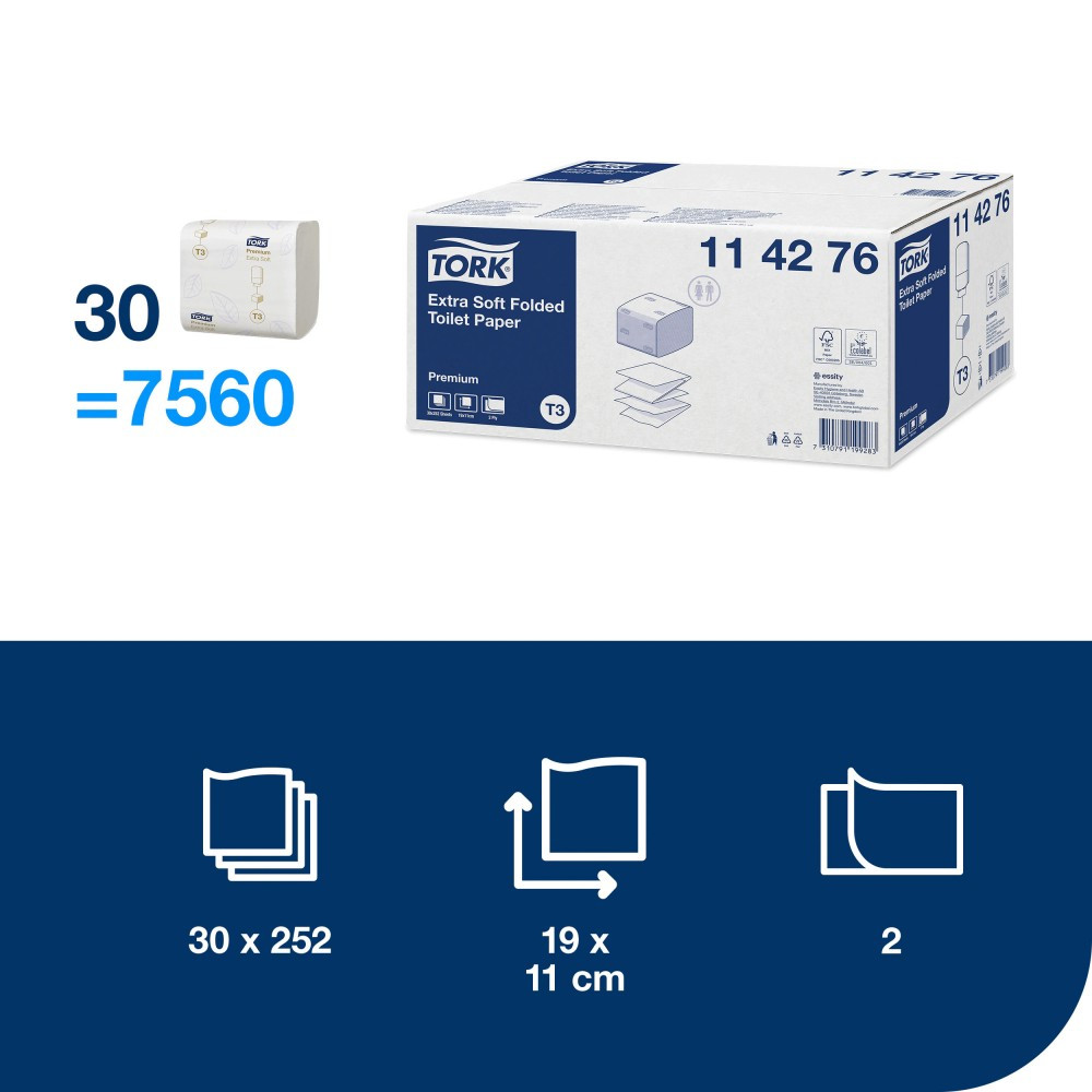 Tork Premium Folded hajtogatott WC papír, extra soft T3 2 rétegű, fehér, 30x252lap SCA114276