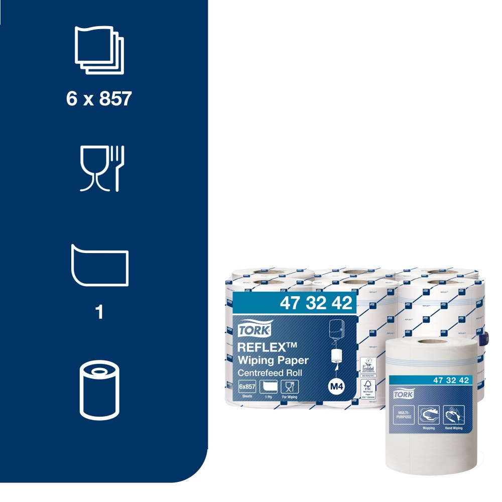 Tork Reflex törlőpapír, belsőmagos M4 1 rétegű, fehér, 6x300m SCA473242 részletes leírása