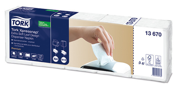 Tork Xpressnap Extra Soft Premium adagolós éttermi szalvéta N4 2 rétegű, levélmintás fehér SCA13670