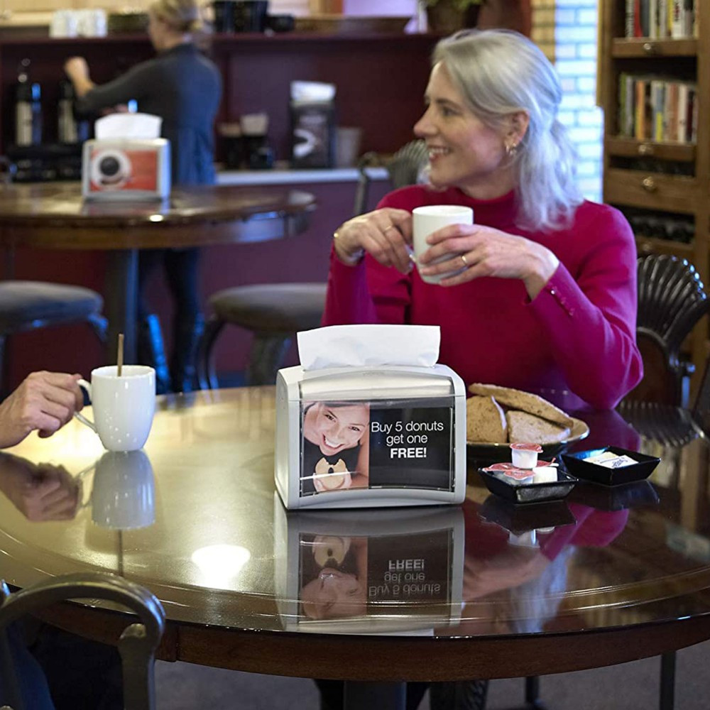 A Tork Xpressnap® asztalra helyezhető szalvétaadagoló kitűnő választás az olyan önkiszolgáló éttermekben, ahol a szalvétákat az asztalokra helyezik.