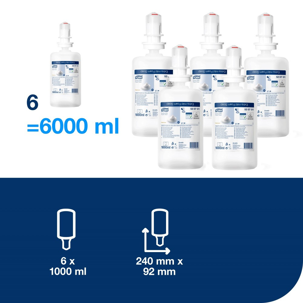 Tork extra kézkímélő ipari habszappan S4 Premium fehér, illatmentes, 1000 ml, 2500 adag SCA520701