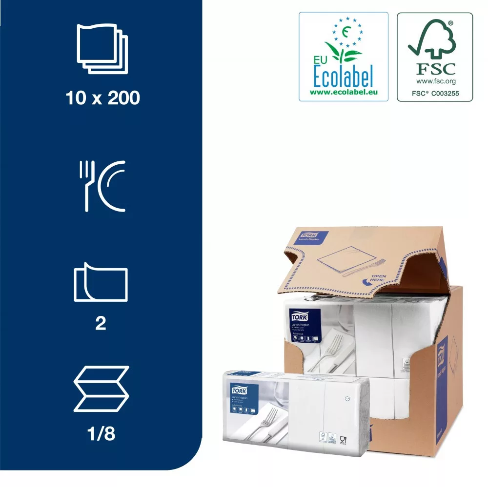 Tork fehér Lunch éttermi szalvéta Advanced fehér 2 rétegű, 33x33 SCA477402