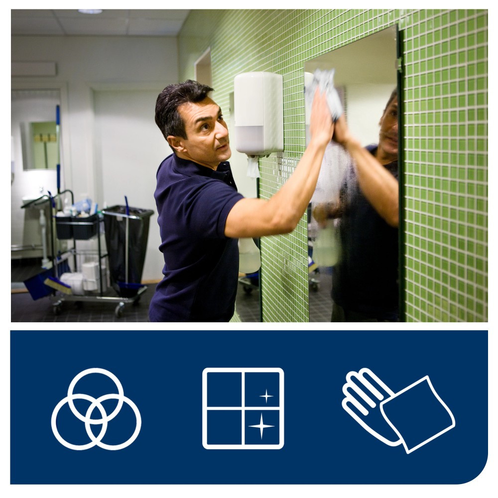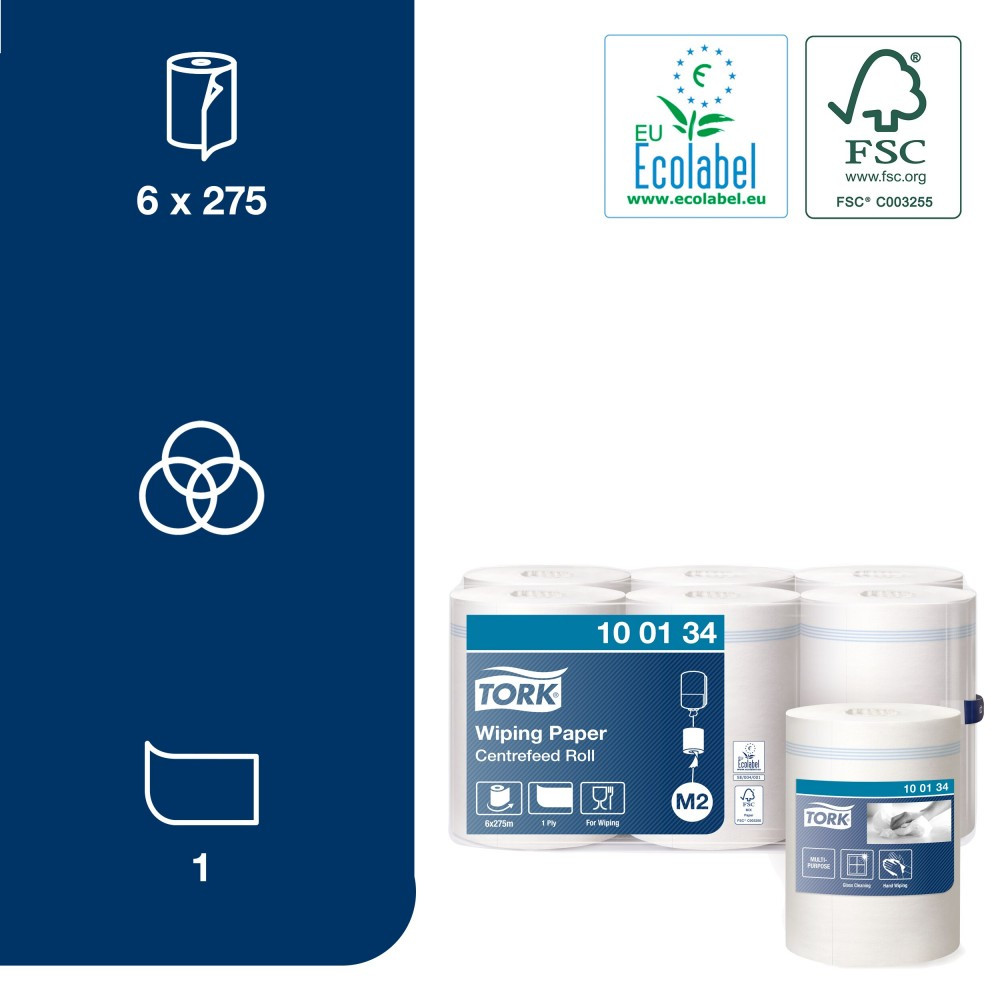 Az egyrétegű Tork törlőpapír ideális enyhébb szennyeződések feltörlésére és kéztörléshez.