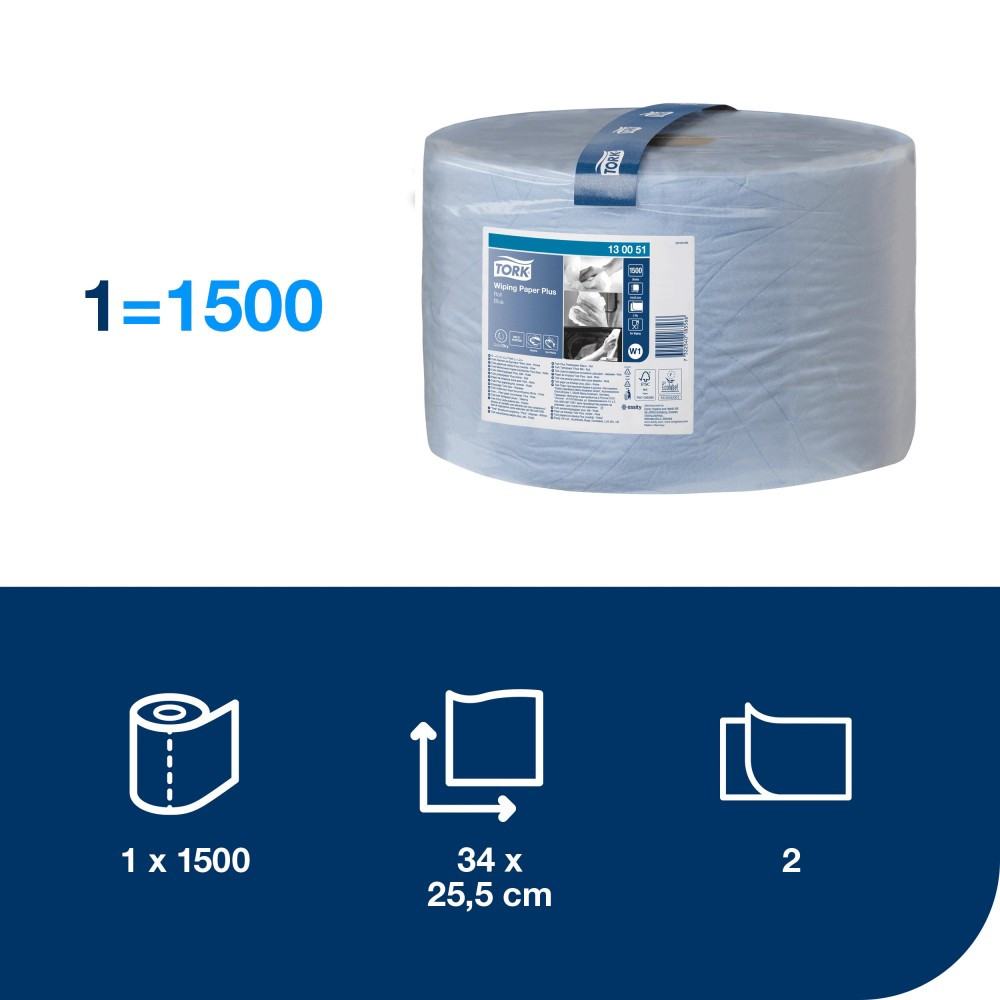 Tork tekercses kéztörlő plusz, W1 2 rétegű, kék, 1x510m SCA130051 részletes leírása
