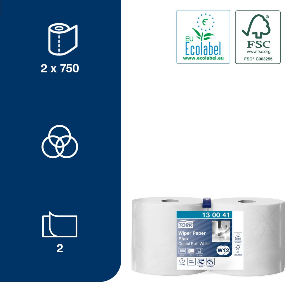 Tork tekercses kéztörlő plusz, kombi W1/W2 2 rétegű, fehér, 2x255m SCA130041 részletes leírása