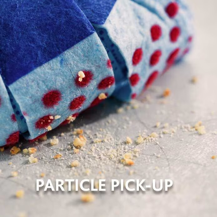 A szélesebb külső textilszalagok 25%-kal nagyobb felületen érintkeznek a padlóval, és kizárólag víz használatával távolítják el a baktériumok 99%-át*.