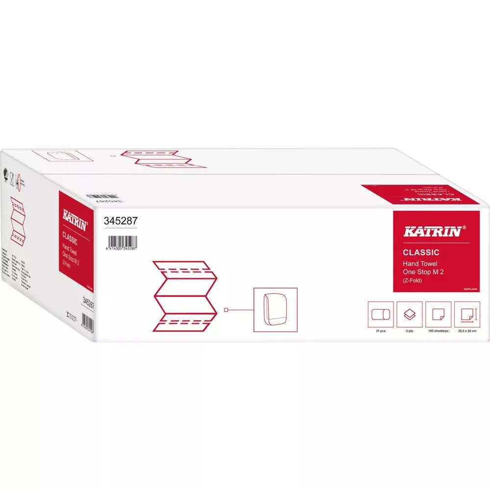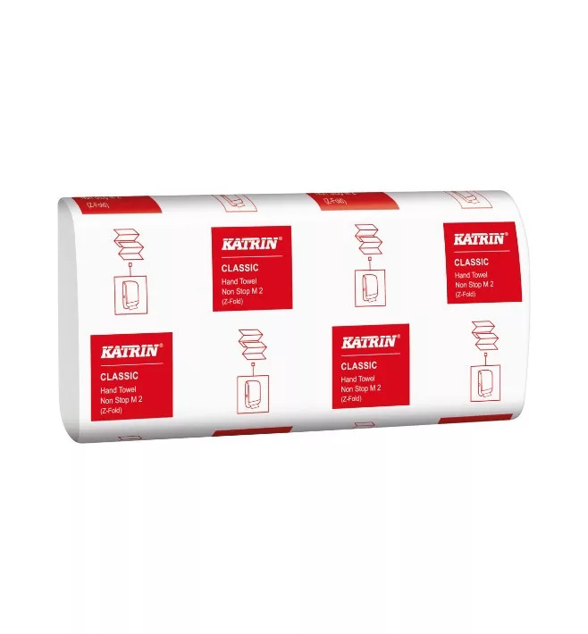 Katrin Classic Non stop Handy Pack interfold hajtogatott kéztörlő, 2 rétegű fehér, 100% újrahasznosított, 20,3x24 cm, 160 lap