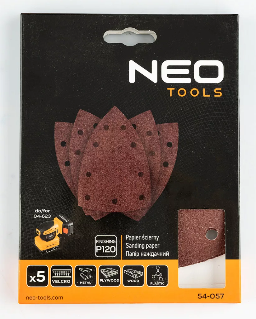 Neo csiszolópapír, tépőzáras, deltacsiszolóhoz,100x147mm, P120, 9 lyukas, (04-623-hoz) (5db/csomag)