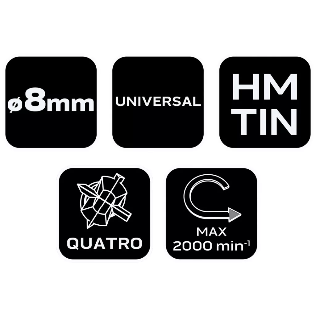Neo univerzális 4 élű üvegfúró, fa, műanyag, fém, kőzet, kerámia fúráshoz, 8mm
