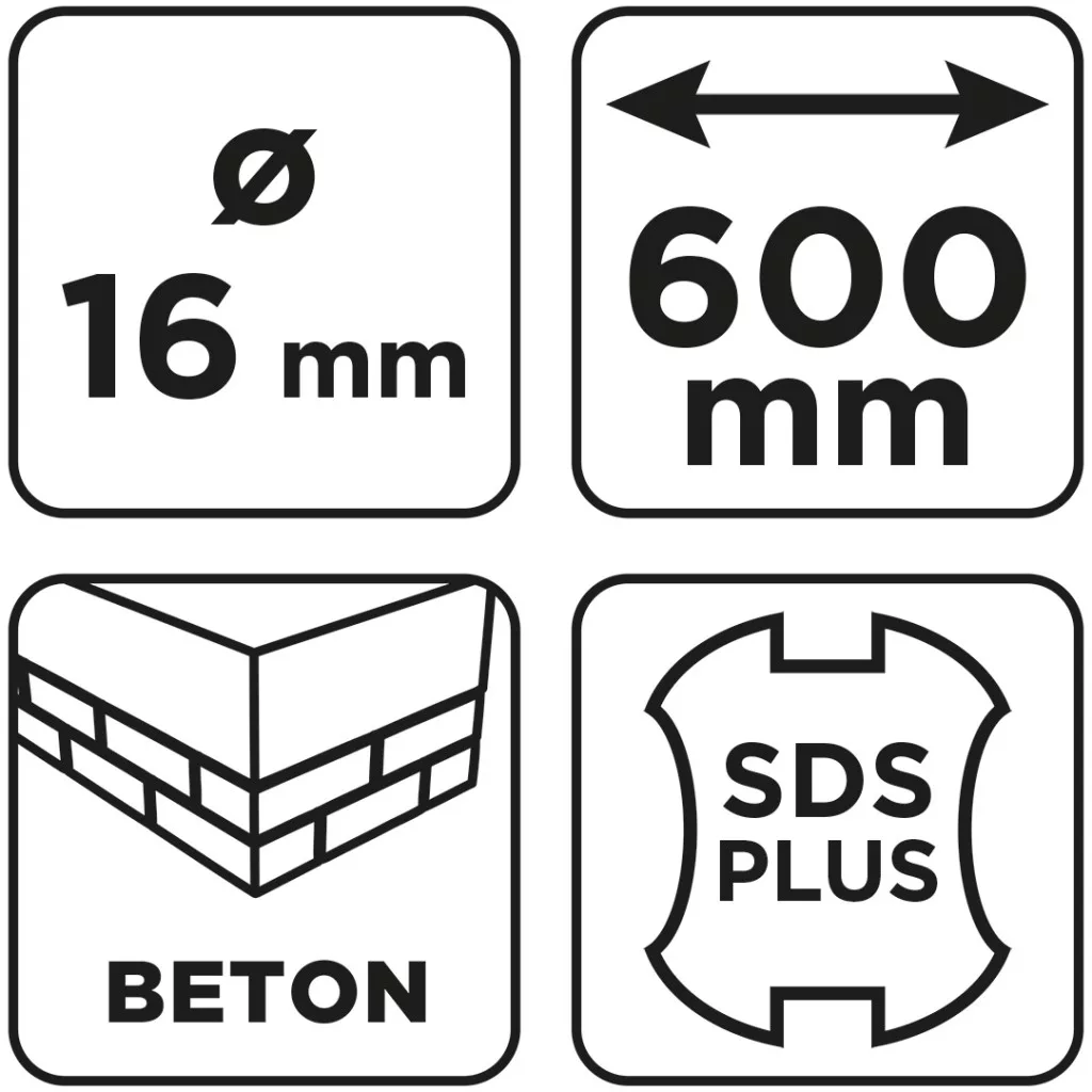 Graphite betonfúró SDS plus, 2 élű, dupla spirálos, 16x600mm