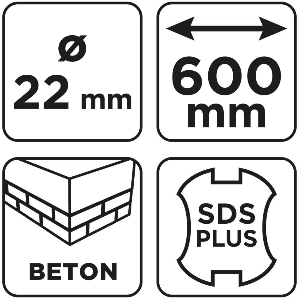 Graphite betonfúró SDS plus, 2 élű, dupla spirálos, 22x600mm