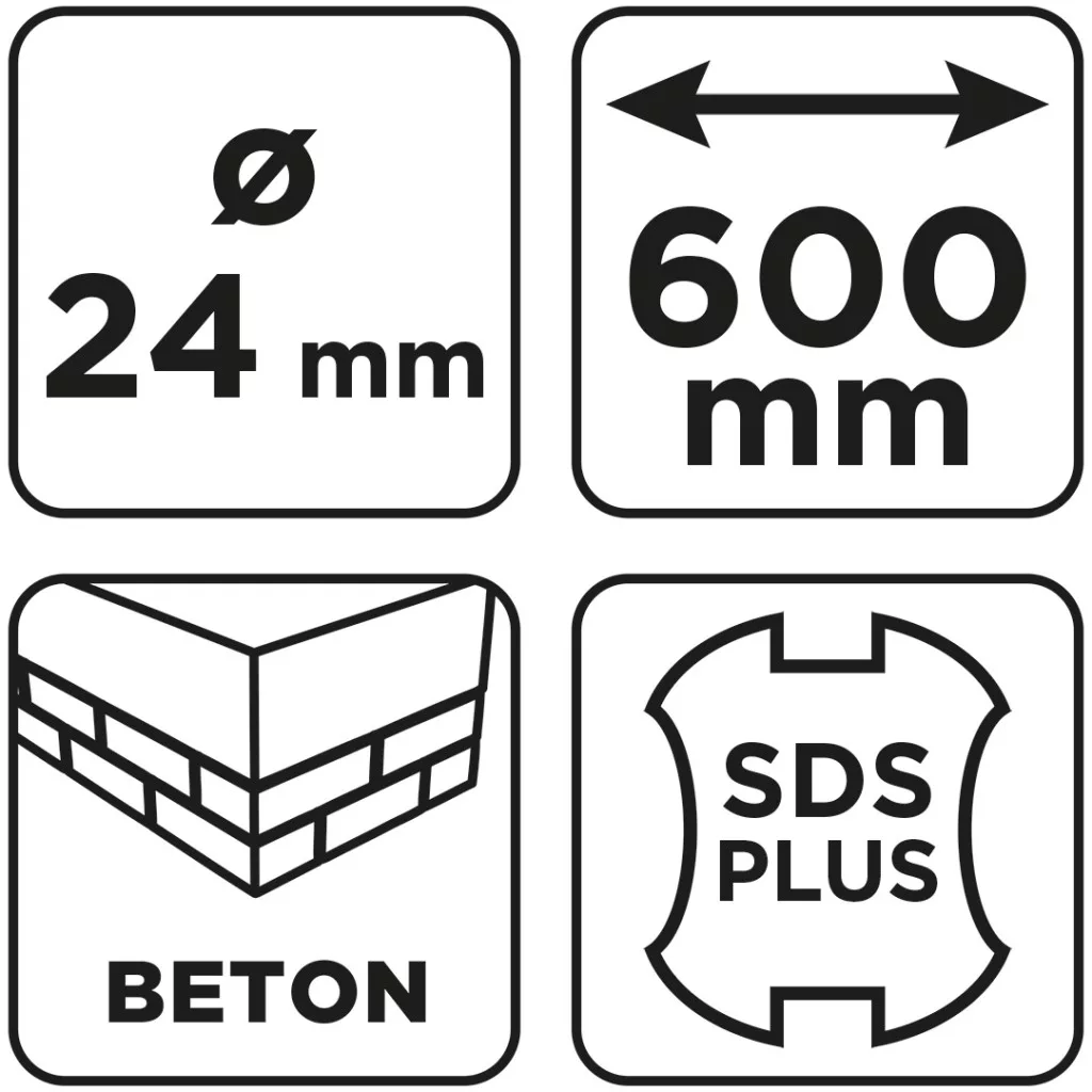 Graphite betonfúró SDS plus, 2 élű, dupla spirálos, 24x600mm