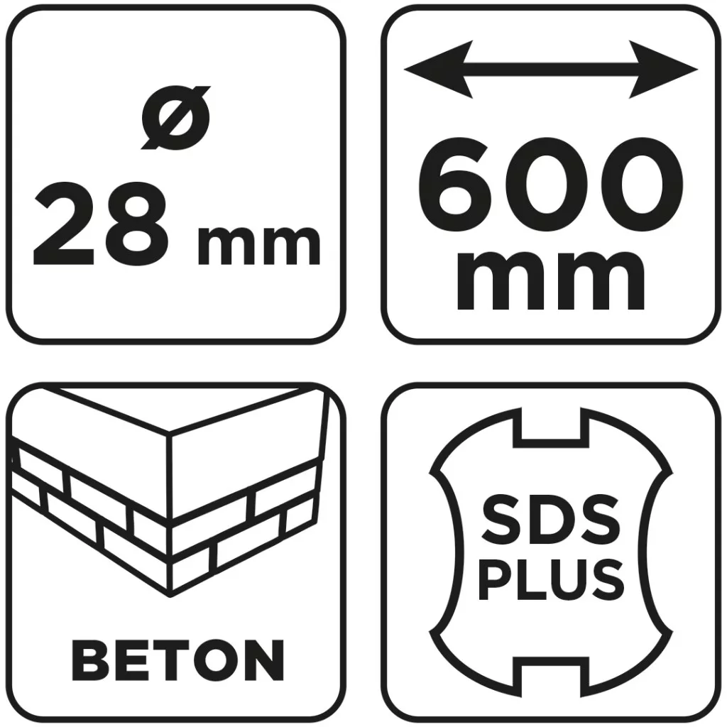 Graphite betonfúró SDS plus, 2 élű, dupla spirálos, 28x600mm