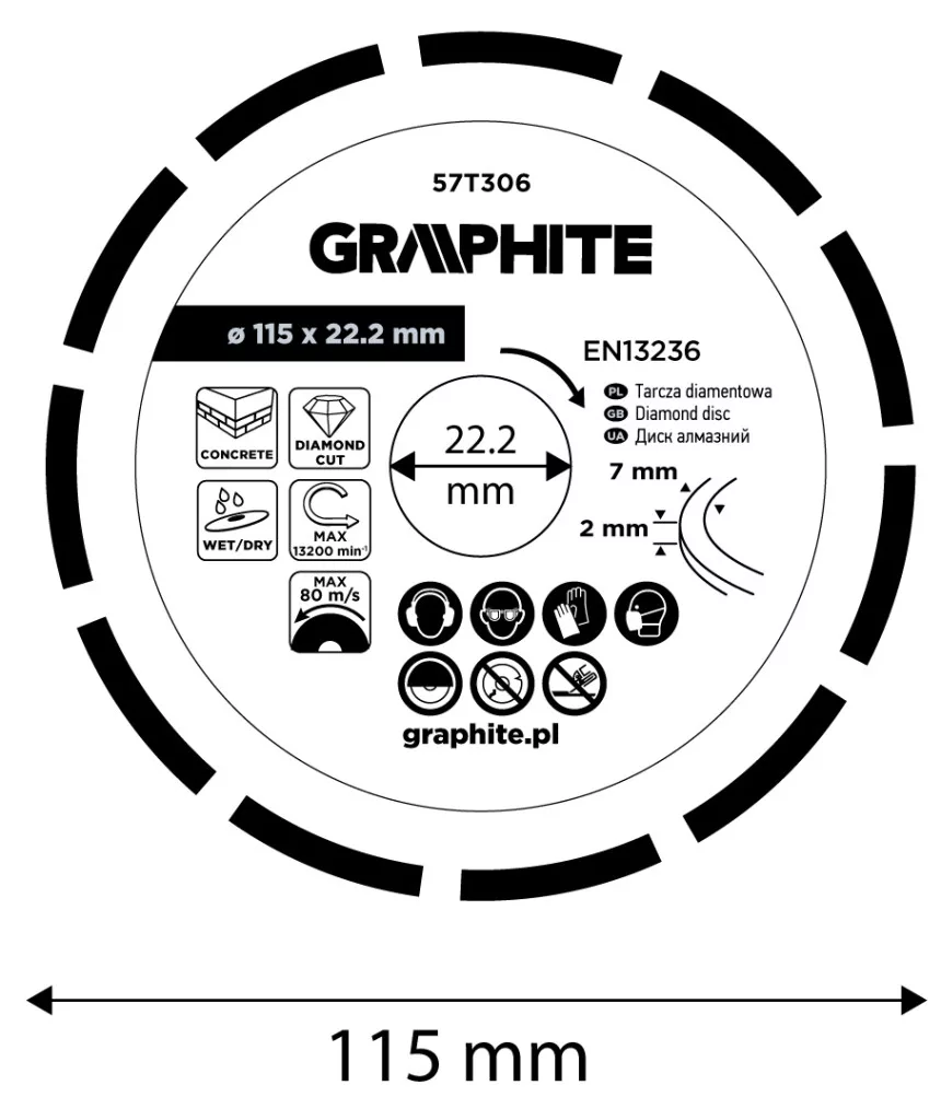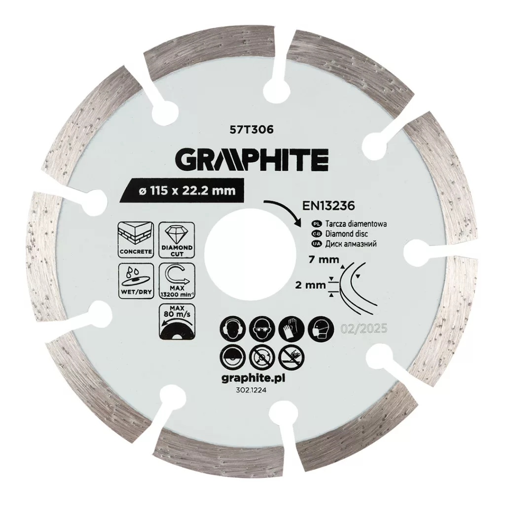 Graphite gyémánt vágókorong 115x22,2mm, szegmenses, száraz és vizes