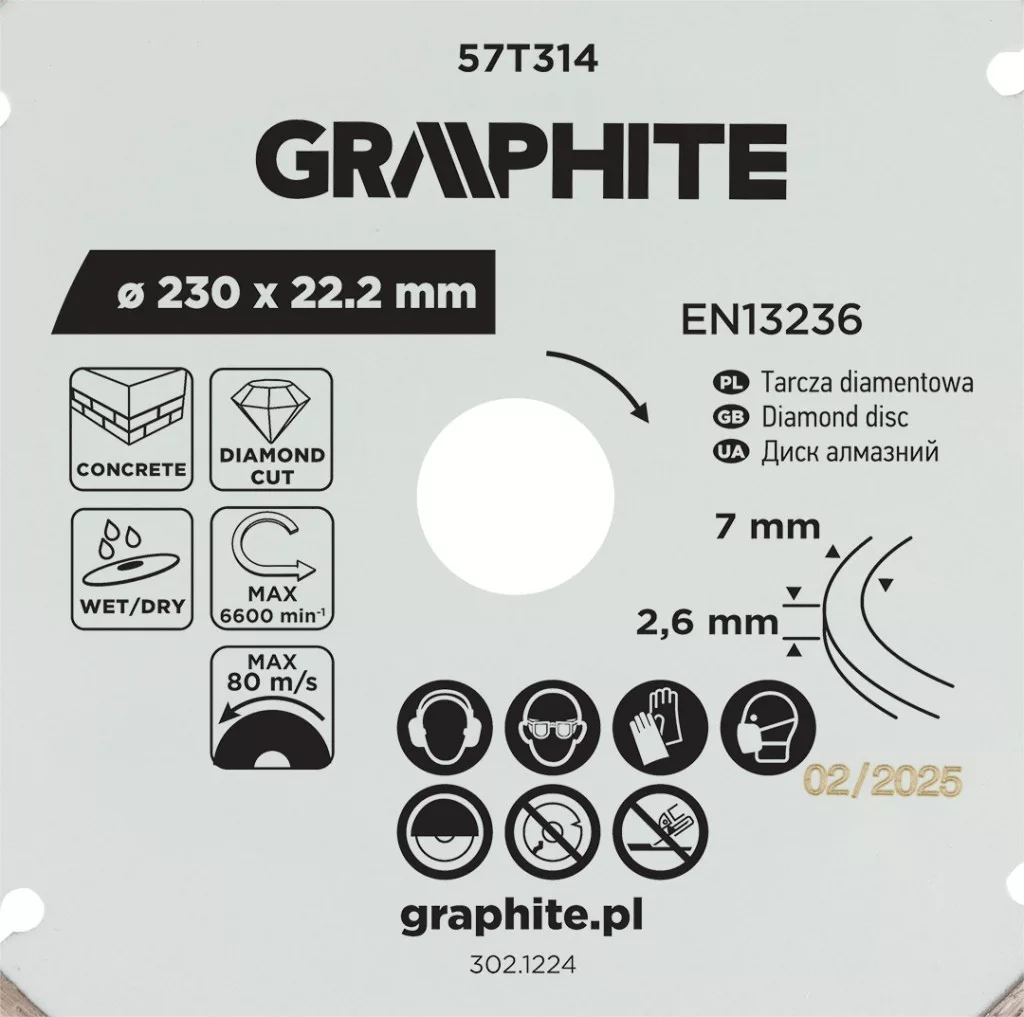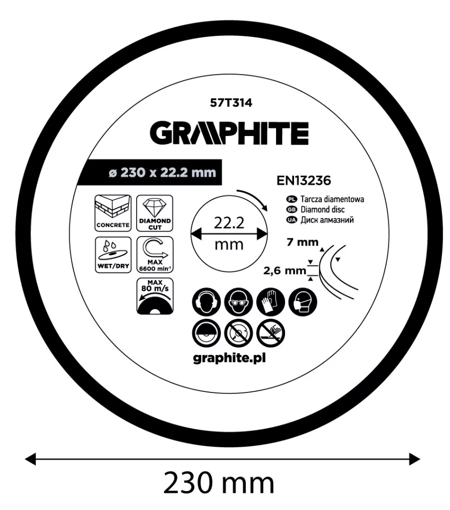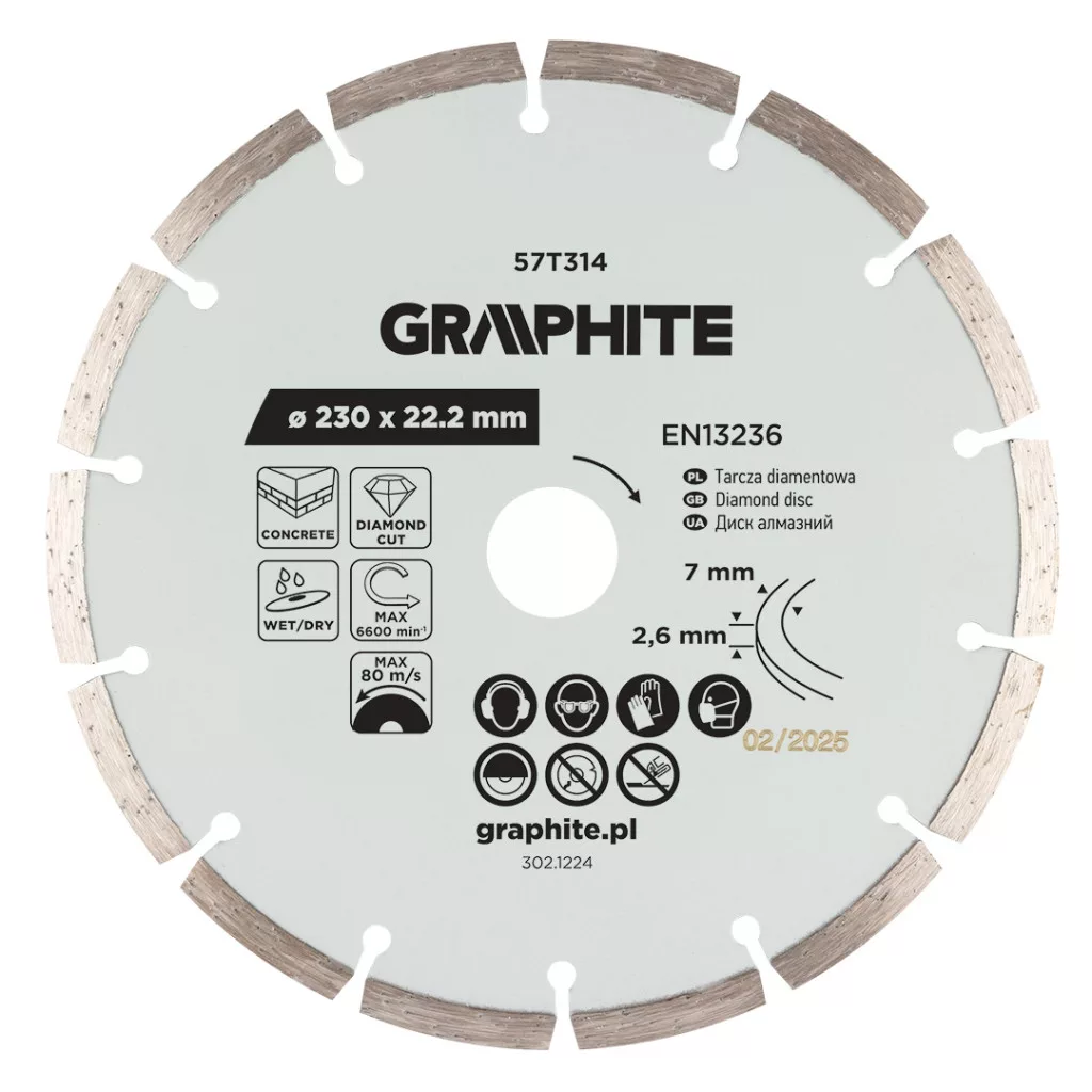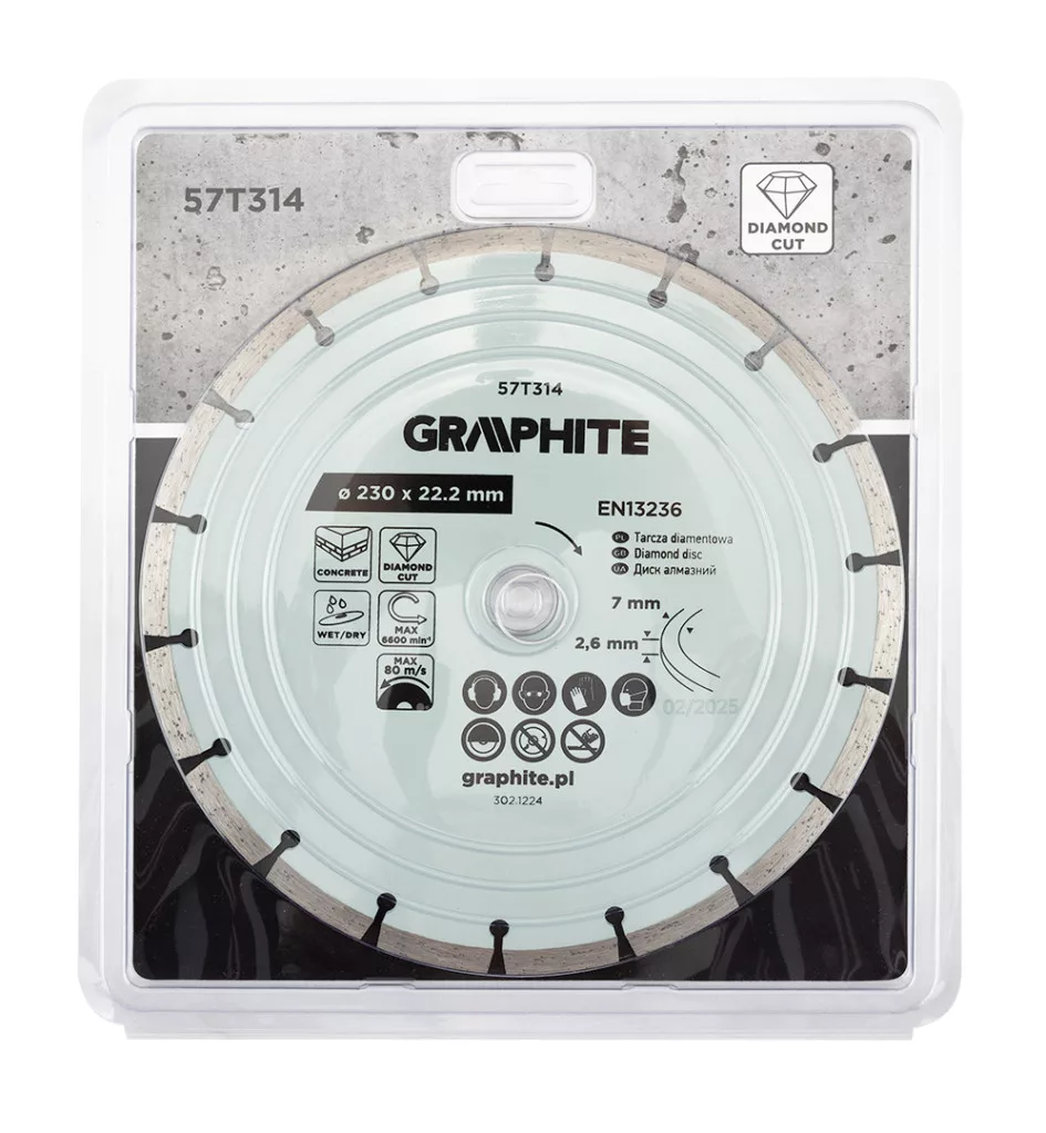 Graphite gyémánt vágókorong 230x22,2mm, szegmenses, száraz és vizes