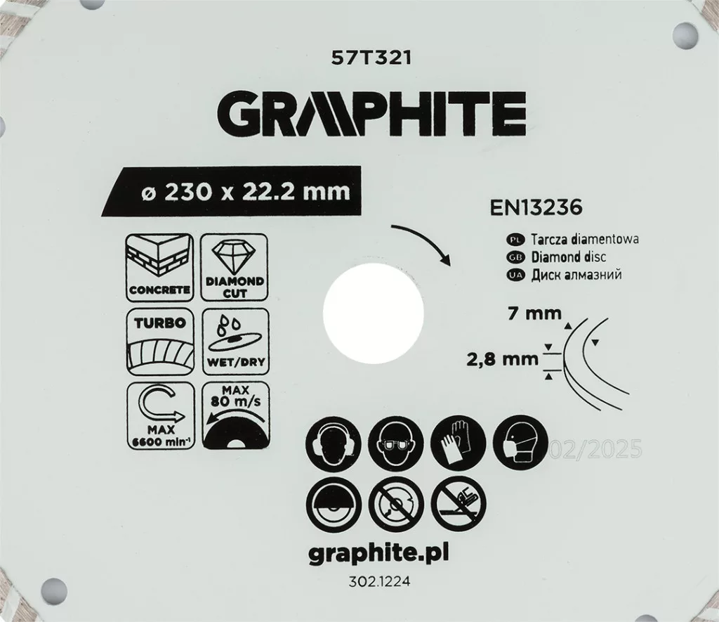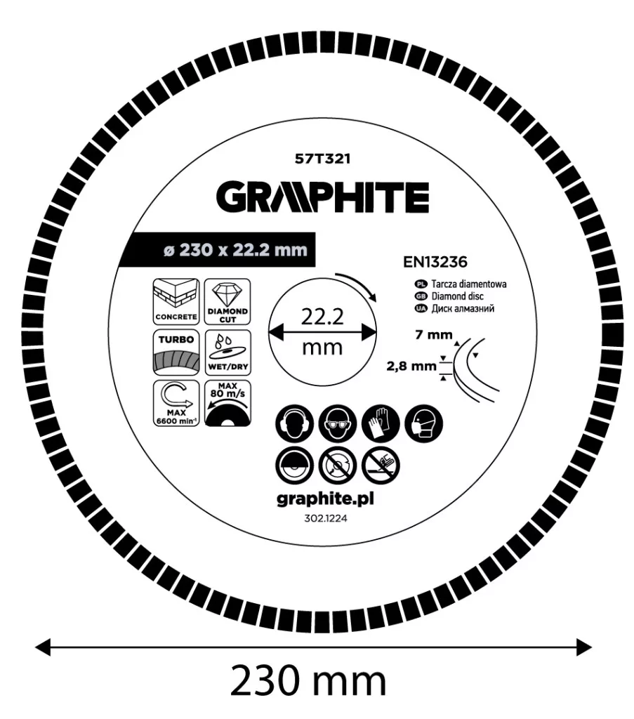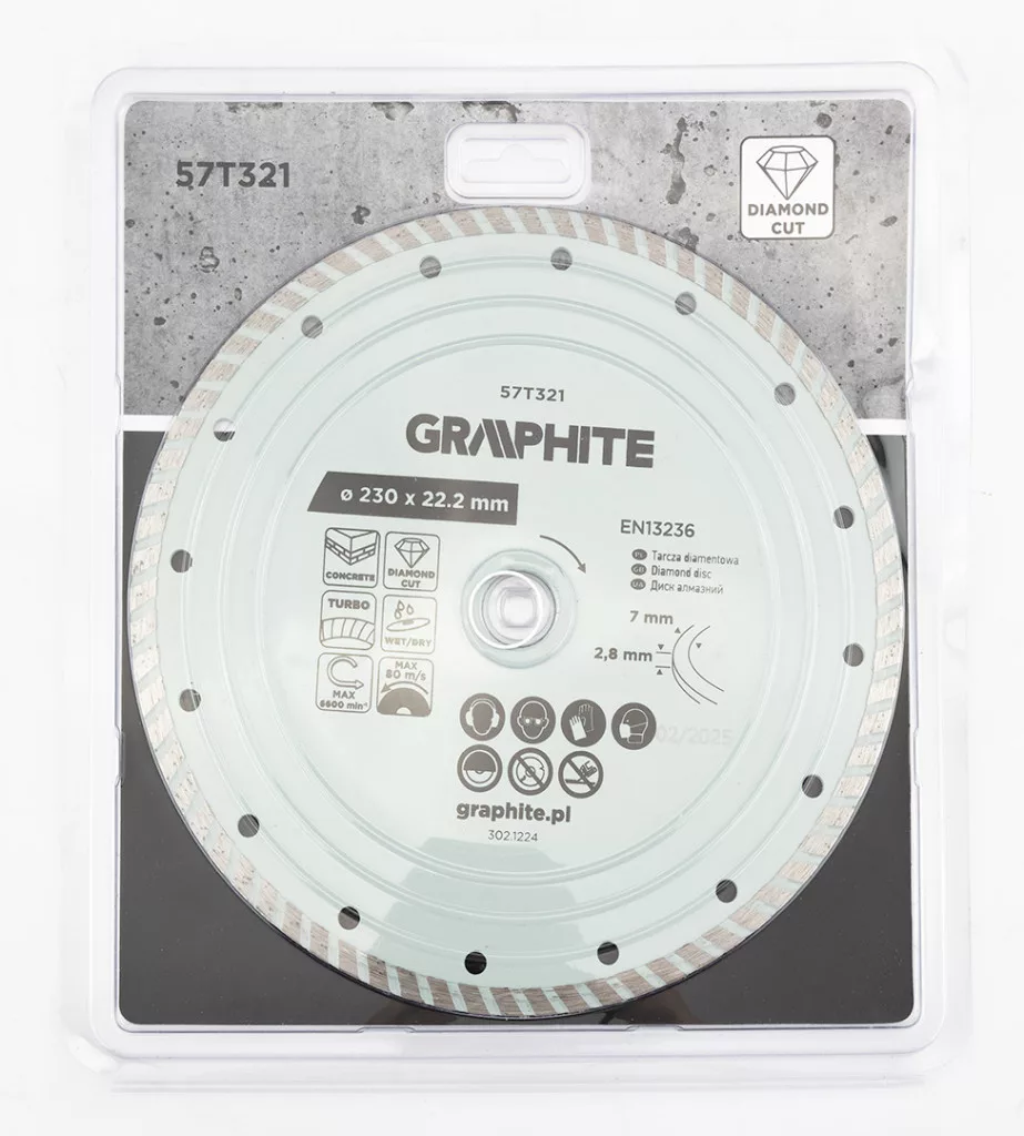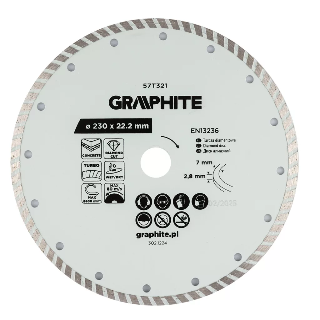 Graphite gyémánt vágókorong 230x22,2mm, turbo, száraz és vizes