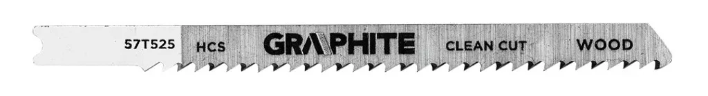 Dekopírfűrészlap, 10 TPI, HCS, U - típusú befogással, 2 db, tiszta vágás 57T525 a Graphite-tól 10 TPI fogsűrűségű, HCS-ből készült, U - típusú befogássalval ellátott Dekopírfűrészlap. A készlet 2 darabot tartalmaz. Teljes hossza 100 mm, munkahossza 74 mm, szélessége 8 mm, vastagsága 1,5 mm, fogazati távolsága 2,5 mm. Alkalmas puhafa, forgácslap, asztalos rétegelt lemez, 3-30 mm vastagságú farostlemez és műanyag/epoxi (átmérő <30 mm) vágására. A Graphite márkájú penge tiszta vágást tesz lehetővé.