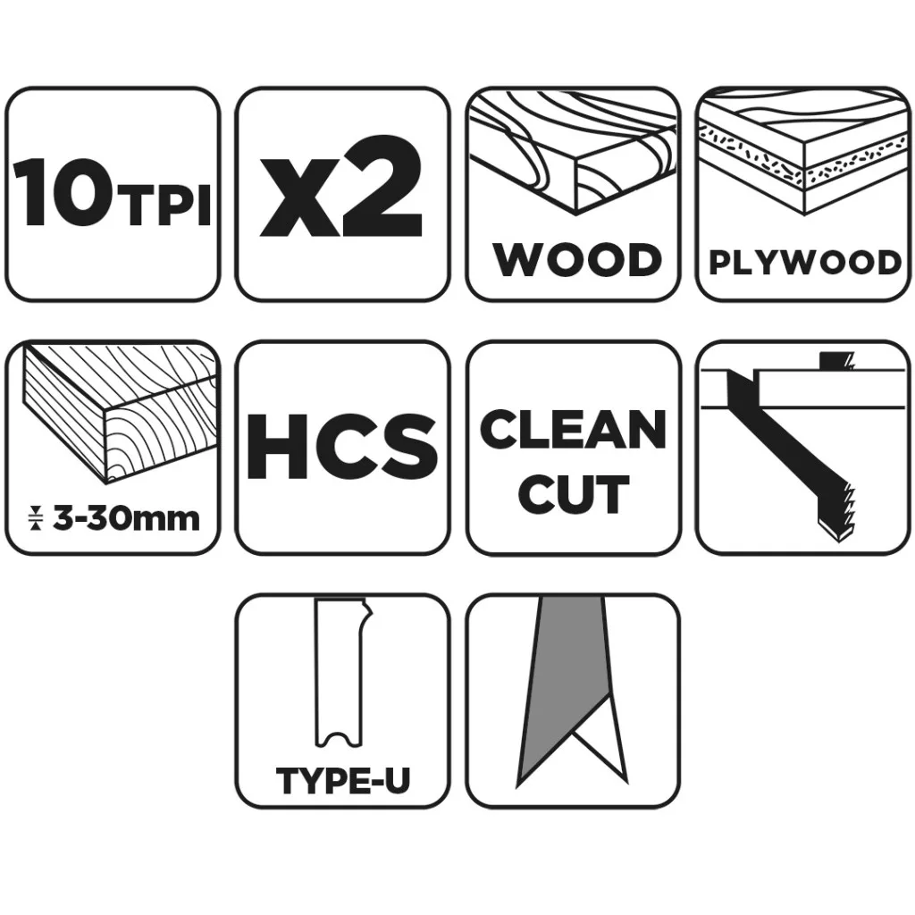 Graphite dekopírfűrészlap, U-befogó, HCS, 10TPI, 74/100mm, fa-rétegelt lemez (2db/csomag)