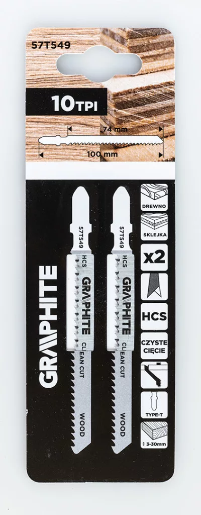 Graphite dekopírfűrészlap, T-befogó, HCS, 10TPI, 74/100mm, fa-rétegelt lemez (2db/csomag)