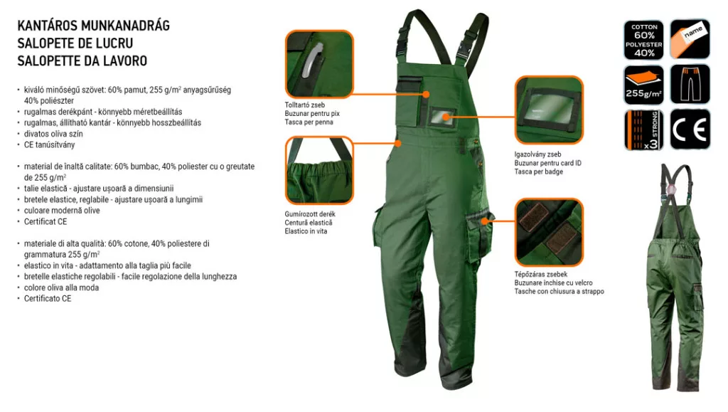 Neo kantáros munkásnadrág olíva, 60% pamut, 40% poliészter, 255 g/m2, S