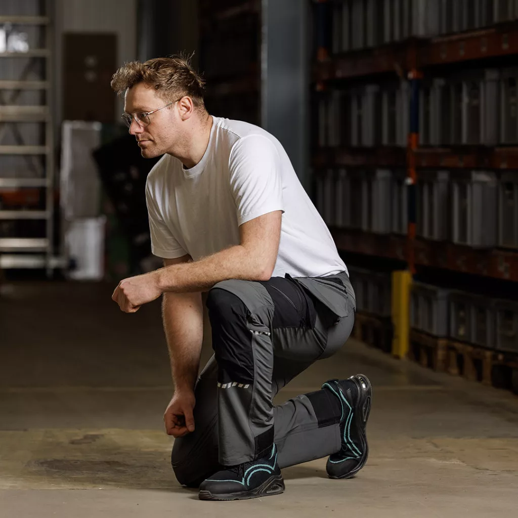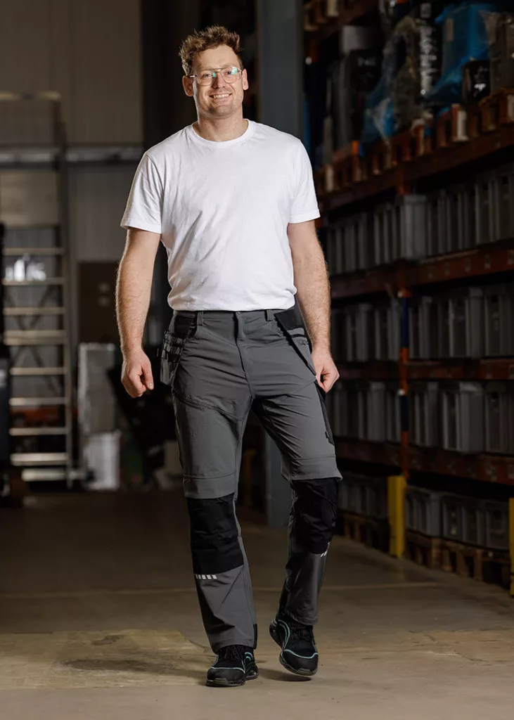 Neo munkásnadrág Mix&Match, 4 irányú sztreccs, 230g/m2, külső csavarzsebek, Cordura erősítés, szürke-fekete, S