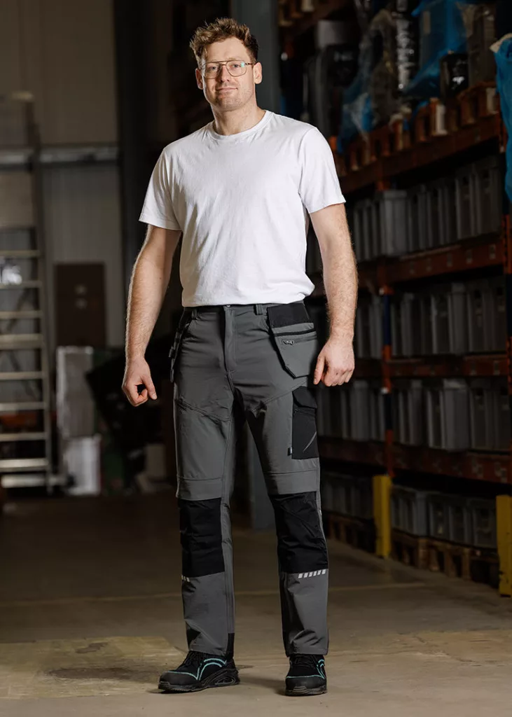 Neo munkásnadrág Mix&Match, 4 irányú sztreccs, 230g/m2, külső csavarzsebek, Cordura erősítés, szürke-fekete, XS