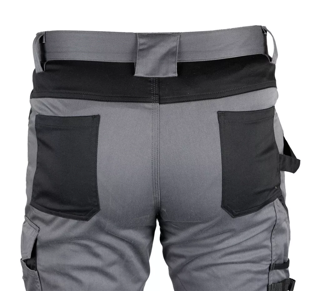 Neo munkásnadrág Mix&Match, 240g/m2, külső zsebek, profilozott térdbetét, fényvisszav. betétek, szürke-fek., XS