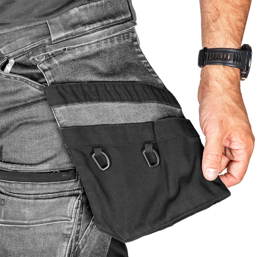 Neo farmer munkásnadrág, Denim, 82% pamut, Oxford szövet, Cordura betétek, cippzáras zsebek, szürke-fekete, S