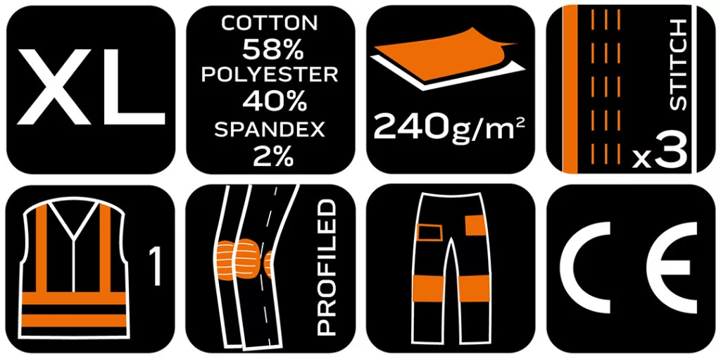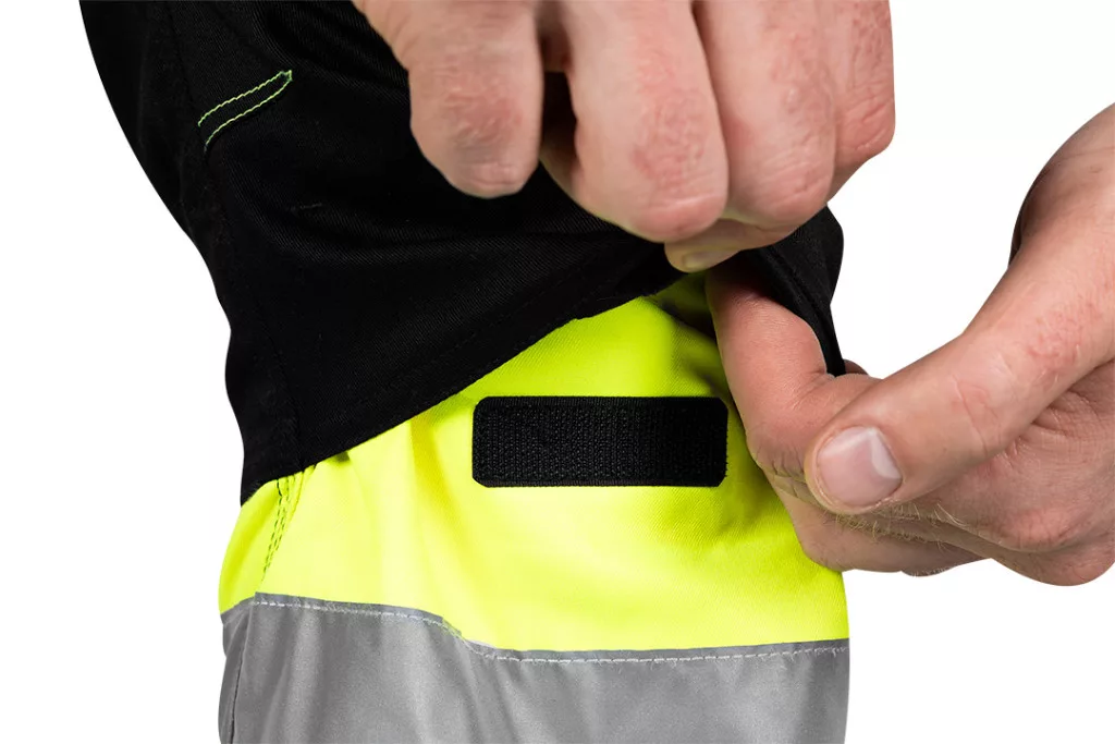 Neo láthatósági munkásnadrág Mix&Match, 1. oszt., 240g/m2, külső zsebek, profilozott térdbetét, fek.-sárga, XL