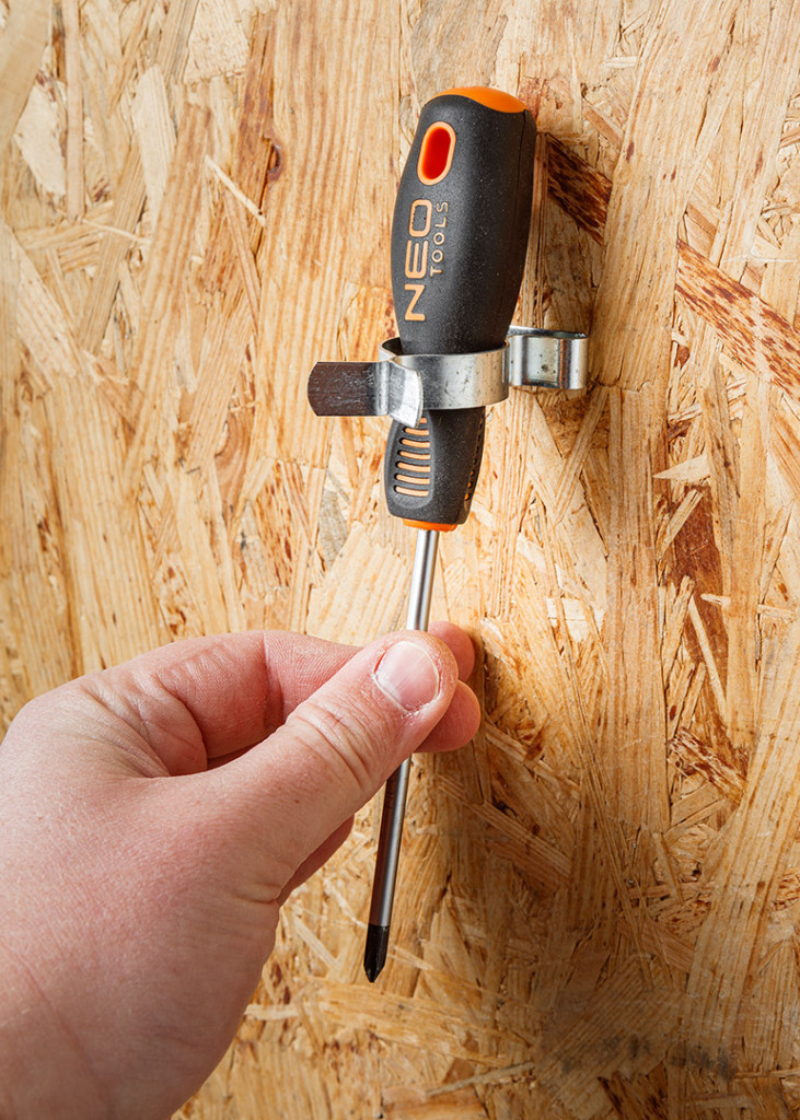 Neo szerszámtartó klipsz, falra szerelhető, horganyzott acél, átmérő 38mm (10db/csomag)
