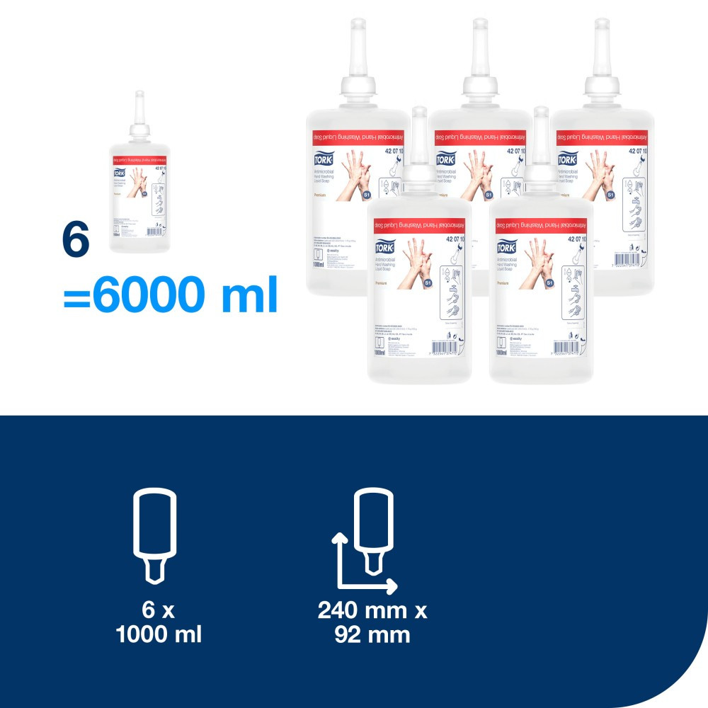 Tork kézfertőtlenítő folyékony ipari szappan, biocid, S1, átlátszó 1 literes SCA420710