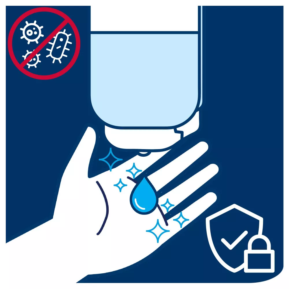 Elősegíti a megfelelő szintű higiénia biztosítását: Gyárilag zárt rendszerű flakon új pumpával minden utántöltéshez, így csökken a fertőzés kockázata, és maximális higiénia biztosítható a gyártósortól a felhasználókig.
