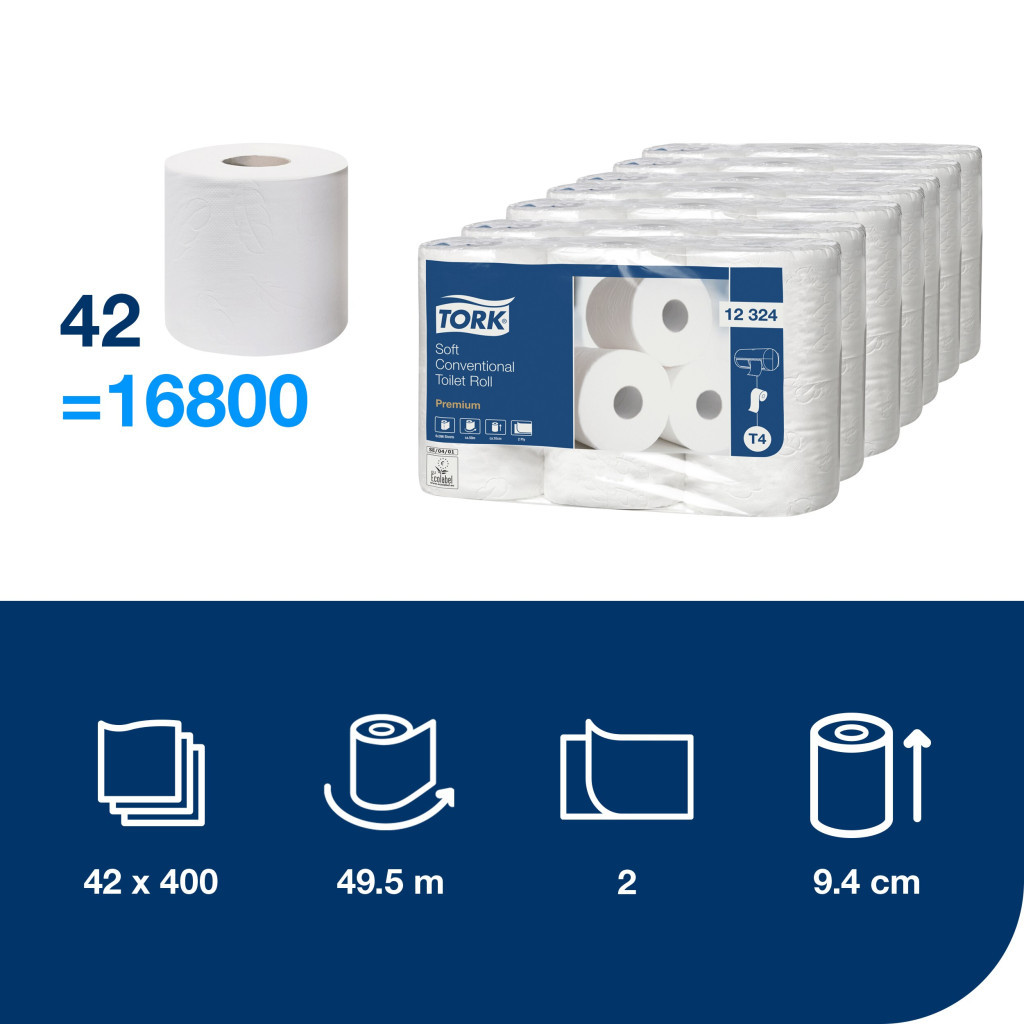 Tork Premium kistekercses WC papír, soft T4 2 rétegű, fehér, 6x7 (50m) SCA12324